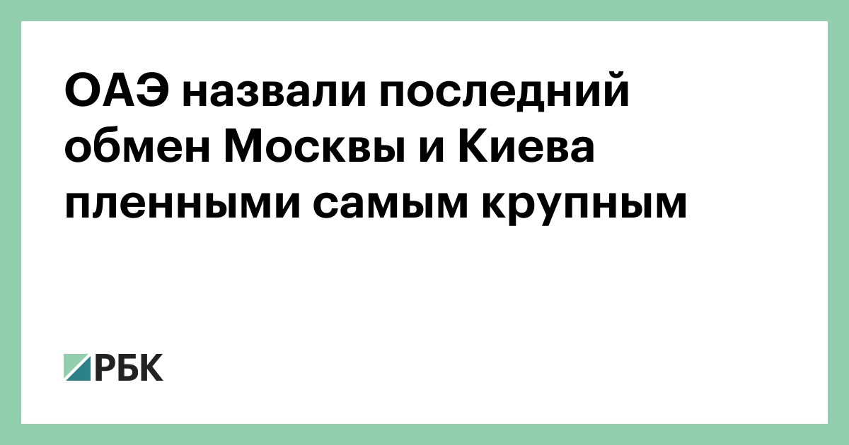 В обмене пленными, состоявшимся 19 апреля между Россией и Украиной, приняли участие 538 человек с обеих сторон. Это был самый крупный единовременный обмен с начала конфликта между странами, заявил МИД ОАЭ. Заявление опубликовано на сайте ведомства.