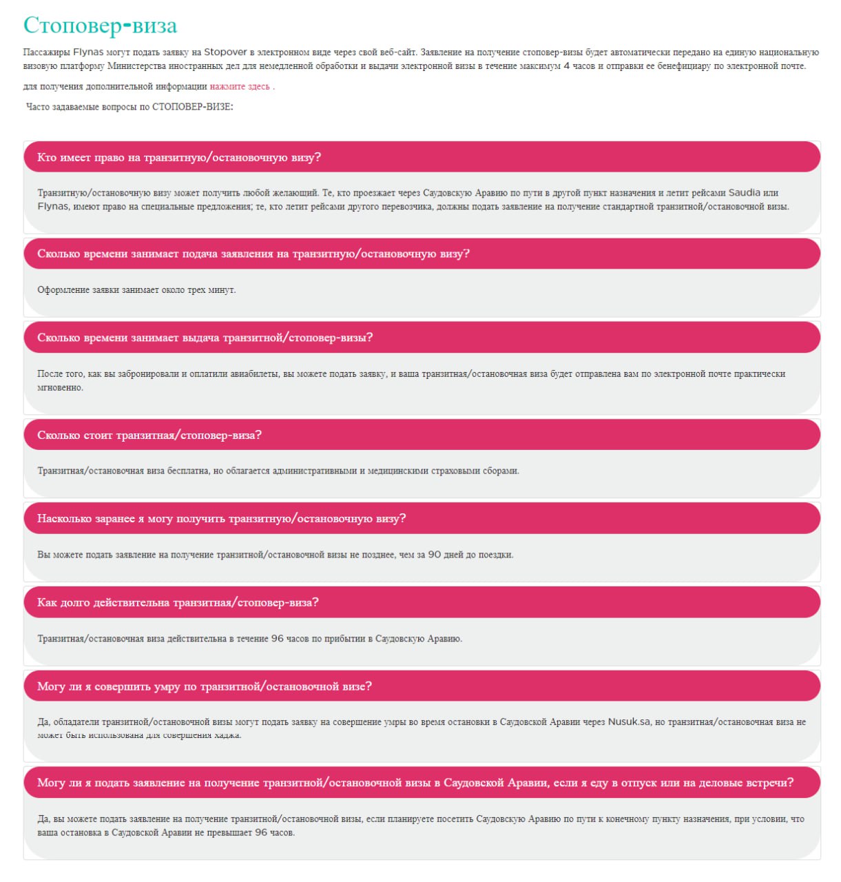На сайте Flynas также говорится, что пассажиры могут подать заявку на стоповер-визу: