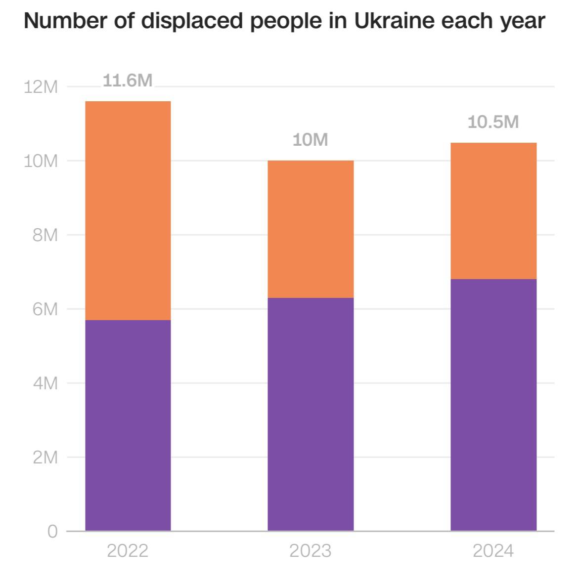 ▫️Более 10 млн украинцев все еще остаются вынужденными переселенцами.