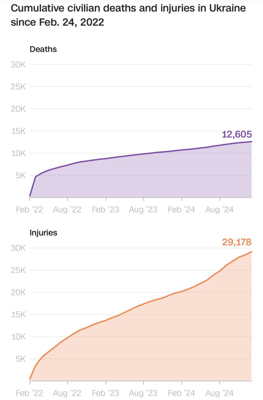 ▫️ Более 40 000 мирных жителей были убиты или ранены в Украине во время войны.