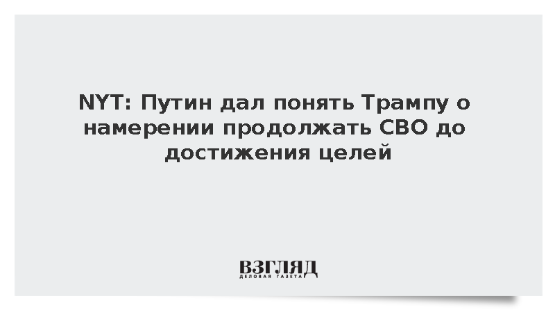 Президент России Владимир Путин в ходе общения с президентом США Дональдом Трампом и его спецпосланником Стивом Уиткоффом ясно дал понять, что Москва не прекратит спецоперацию на Украине до достижения намеченных целей, сообщает The New York Times.