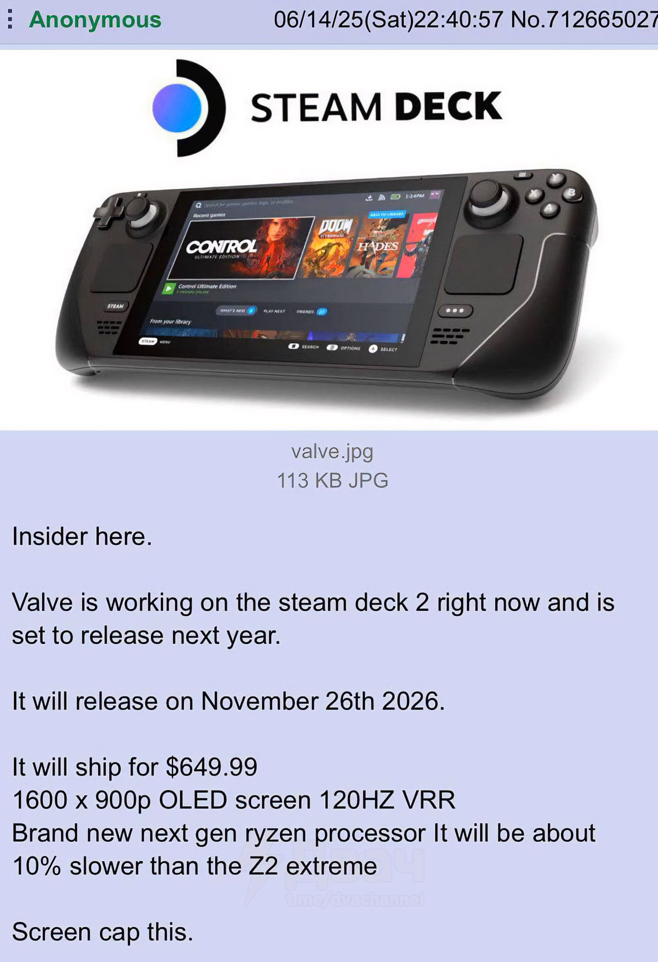 Steam Deck 2 будет в два раза мощнее первого и выйдет 26 ноября 2026 года, заявляет инсайдер