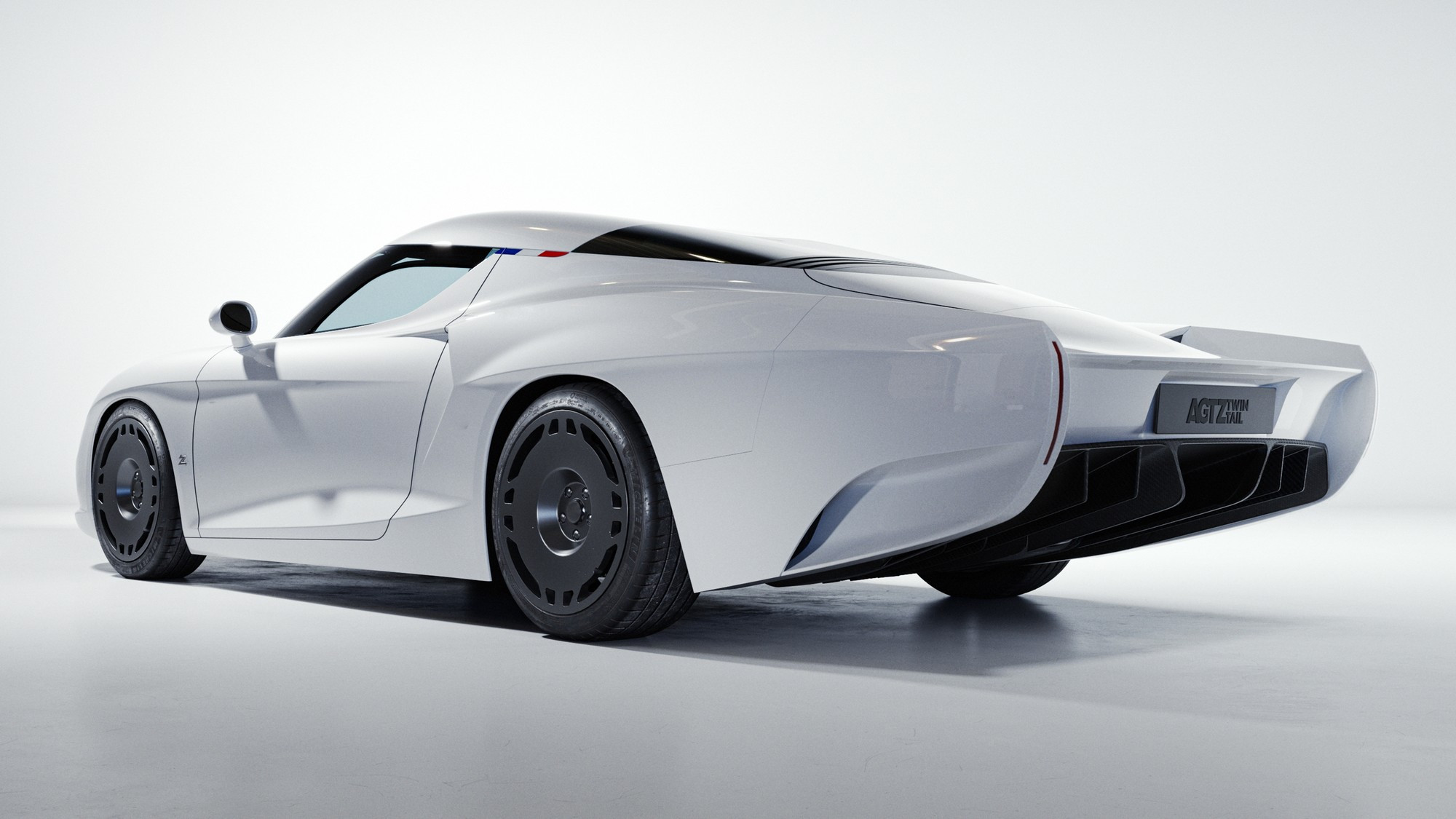 Уровень мастерства Zagato таков, что в AGTZ Twin Tail с трудом угадывается исходное современное среднемоторное купе Alpine A110: переделано всё наружное оперение, в том числе двери и остекление. Фирменные загатовские пузыри на крыше, разумеется, есть. Пристяжной длинный хвост заметно меняет облик машины, с ним AGTZ Twin Tail становится похож на настоящий суперкар.