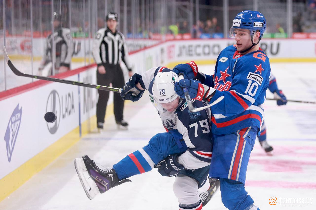 Второй гол СКА забил тоже в концовке второго периода. Отличился в большинстве 20-летний Григорий Кузьмин. Для молодого хоккеиста эта шайба стала первой в КХЛ и сразу в плей-офф — бывает же.