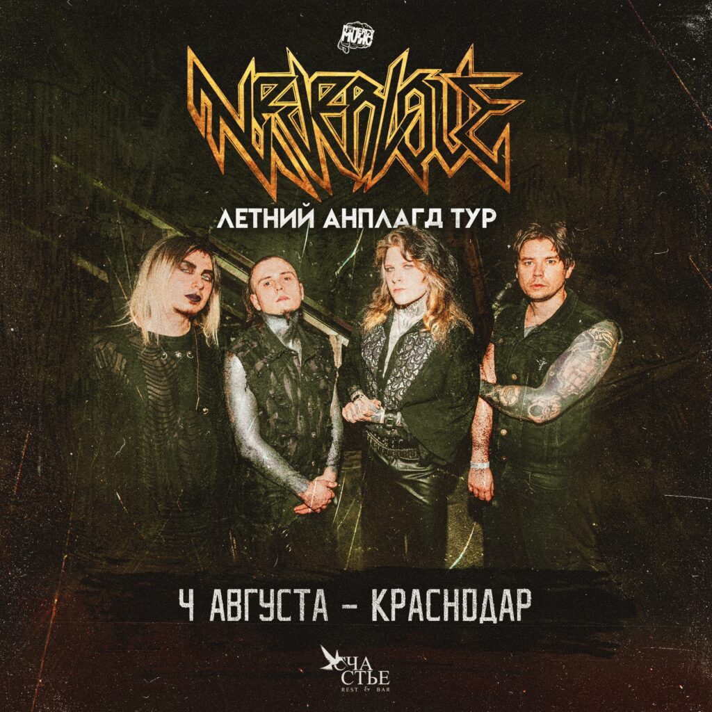 Ещё одни недавние гости кубанской столицы скоро возвращаются в Краснодар в рамках своего «Летнего анплагд тура». Металлисты-соблазнители Neverlove сыграют свои хиты про лисий-кисий взгляд и гинеколога в акустике.