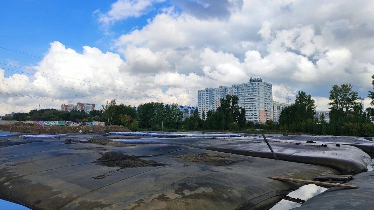 Для временного хранения ила оборудованы четыре площадки с геотубами — специальными контейнерами для обезвоживания. На двух из них уже установлено около 140 емкостей, куда поступает ил, откачанный земснарядами с участка от пруда Коммунар до комплекса «Мегаполис».