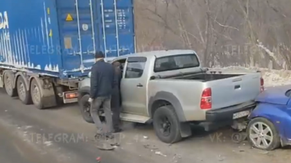 Днем в пятницу, 3 февраля, пользователь соцсетей рассказал о ДТП в Прокопьевском округе, рядом с поселком Калачево. Судя по видео с места событий, фура и несколько легковушек сложились в "паровозик". Также рядом стоял микроавтобус местного предприятия, которое производит промышленную взрывчатку.