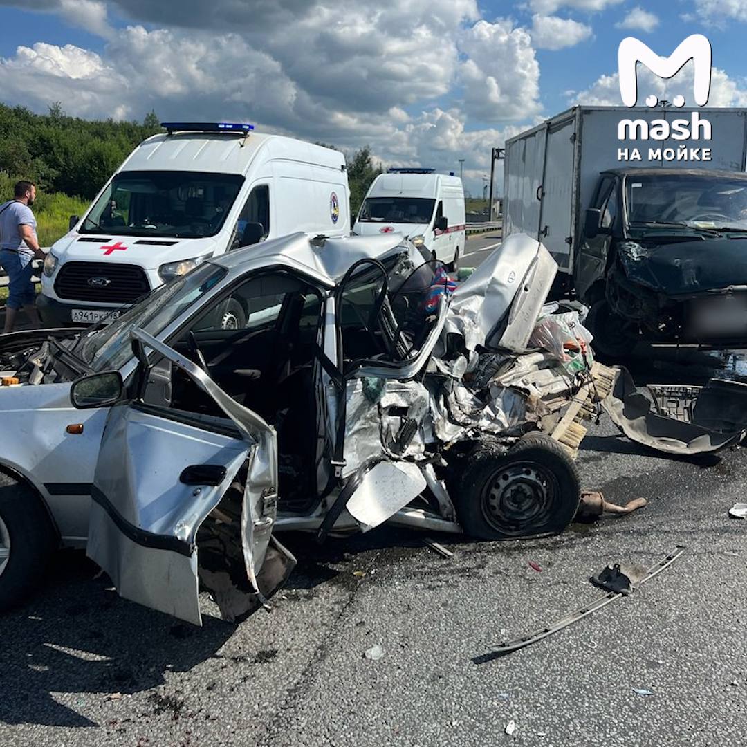 Массовое ДТП произошло на 37-м км КАДа — "газель" влетела в легковушку, которая стояла на полосе безопасности, а затем зацепила ещё две машины.