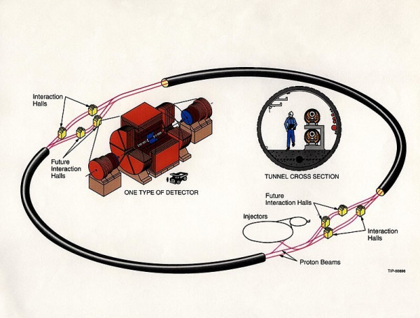 В 1980-х годах США задумали построить крупнейший в мире ускоритель частиц - Superconducting Super Collider (SSC). Этот невероятно грандиозный проект с бюджетом около $11 миллиардов должен был стать венцом физики элементарных частиц. SSC планировалось построить в штате Техас и оснастить кольцевым тоннелем длиной 87 километров - втрое больше, чем у Большого адронного коллайдера.