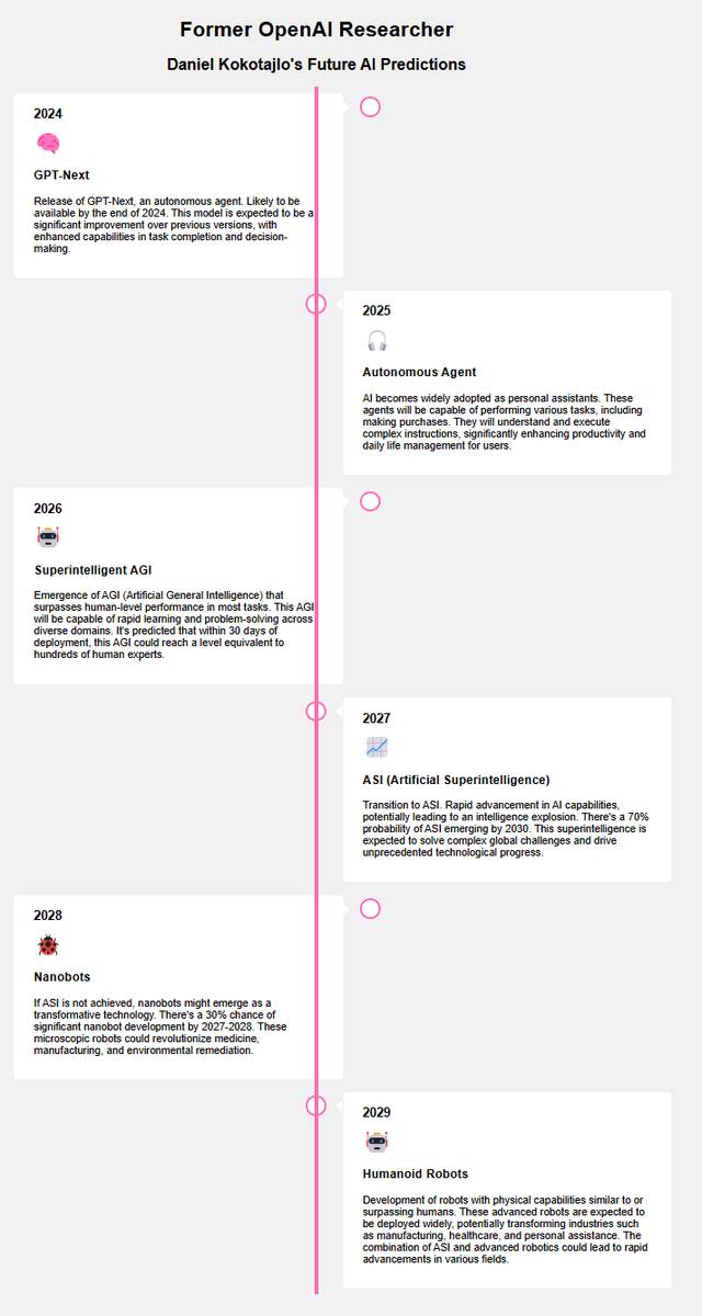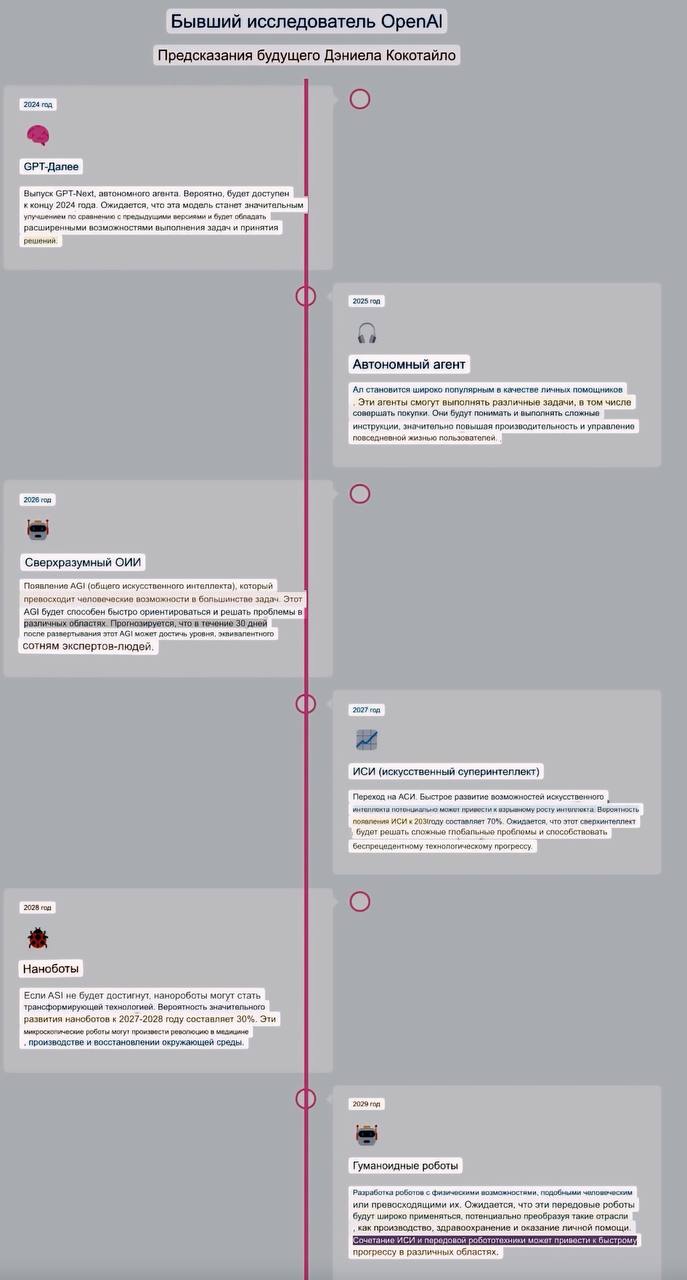 ⚠️ Подвезли новые инсайды от бывшего сотрудника OpenAI – он раскрыл планы компании на следующие 5 лет. Забудьте про AGI, нас ждёт сверхинтеллект, который будет многократно превосходить человеческий разум. Этот план может казаться безумным, но он полностью соответствует предыдущим утечкам.