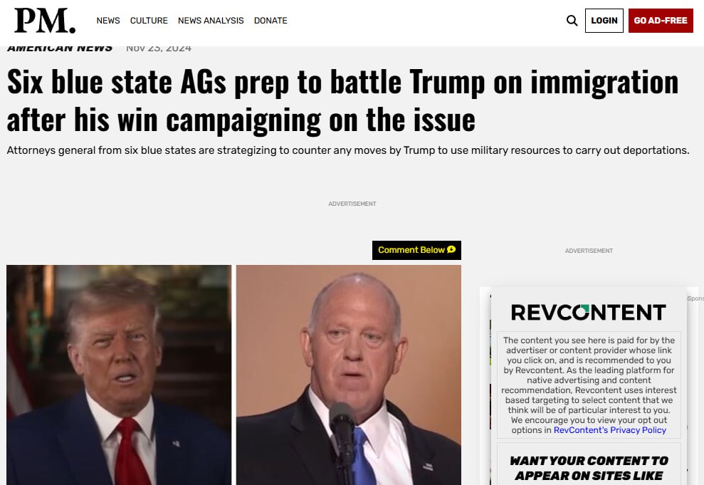 PM: шесть генеральных прокуроров «синих» штатов готовятся к борьбе с любыми шагам Трампа по использованию военных ресурсов для проведения депортаций.