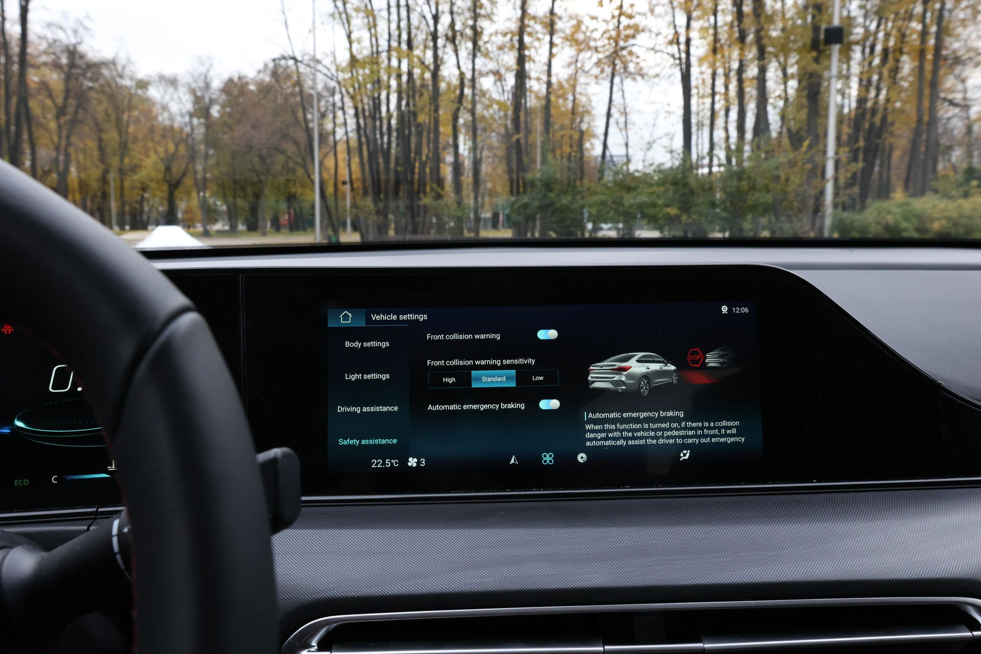 Камеры кругового обзора – это хорошо. Только вот графика по современным меркам так себе, а в темноте понять, что вообще выводится на экран диагональю 12,25 дюйма, совсем сложно. Адаптивный круиз-контроль живет на своей волне и при перемене рельефа может запросто разогнать седан на пару километров в час быстрее установленного лимита. При этом если перед Eado plus перестраивается, а потом уходит из ряда попутная машина, Changan очень медленно набирает заданную скорость, что не всегда нравится тем, кто едет за вами.
