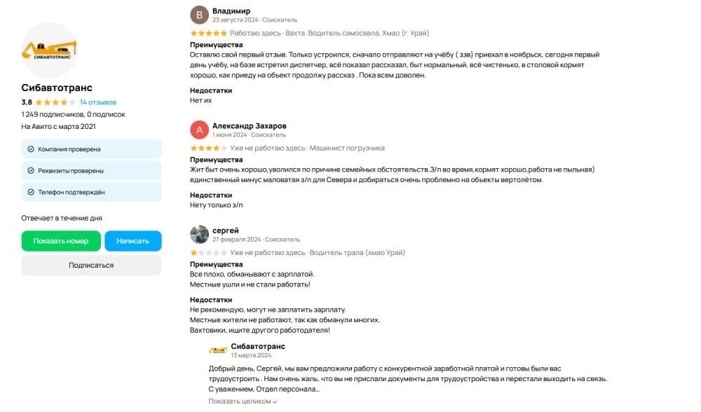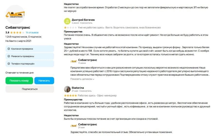 Отзывы о работе в «Сибавтотранс» разнятся от позитивных до созвучных рассказанной Анной истории.