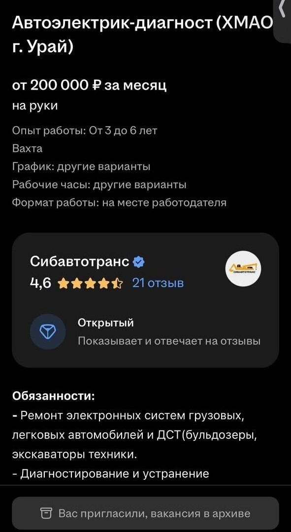 «Оставлю свой первый отзыв. Только устроился, сначала отправляют на учёбу, приехал в Ноябрьск, сегодня первый день учёбы, на базе встретил диспетчер, всё показал, рассказал, быт нормальный, всё чистенько, в столовой кормят хорошо, как приеду на объект, продолжу рассказ. Пока всем доволен», — написал водитель самосвала на сайте объявлений.