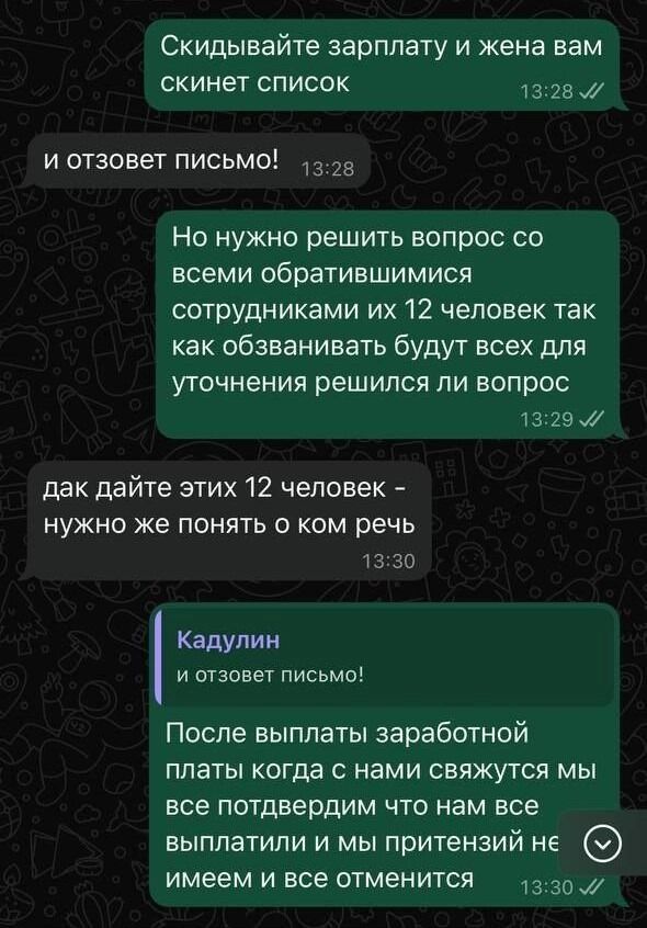 Но, как отметил наш собеседник, и сам «крупняк» находится в таком же положении и, по итогу, страдают обычные люди, в том числе. Кадулин подчеркнул, что знает об обращении сотрудников к Путину и находится на связи с работниками и экс-сотрудниками.