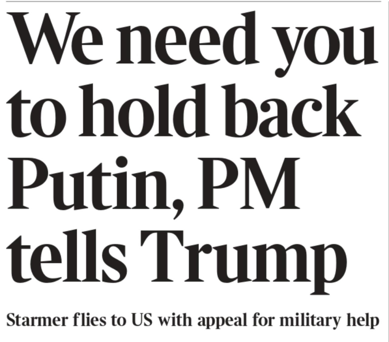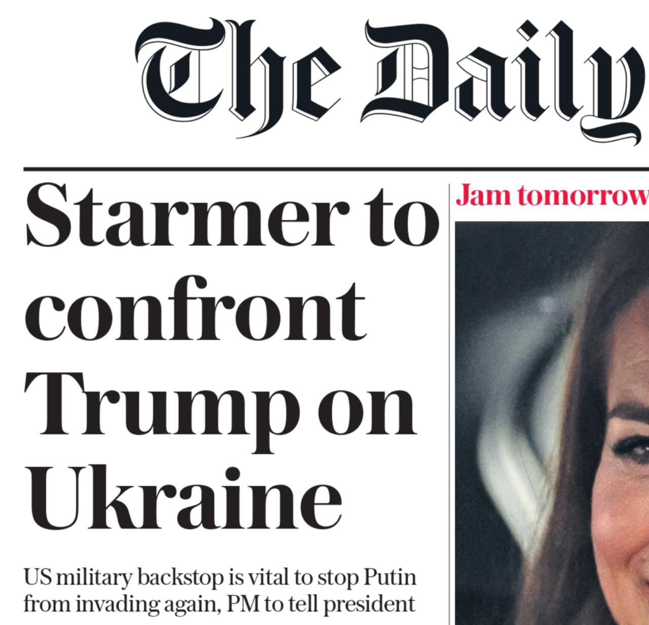 The Daily Telegraph: «Стармер намерен противостоять Трампу по Украине. Военная поддержка жизненно необходима для остановки Путина от нового вторжения, - премьер-министр скажет президенту».