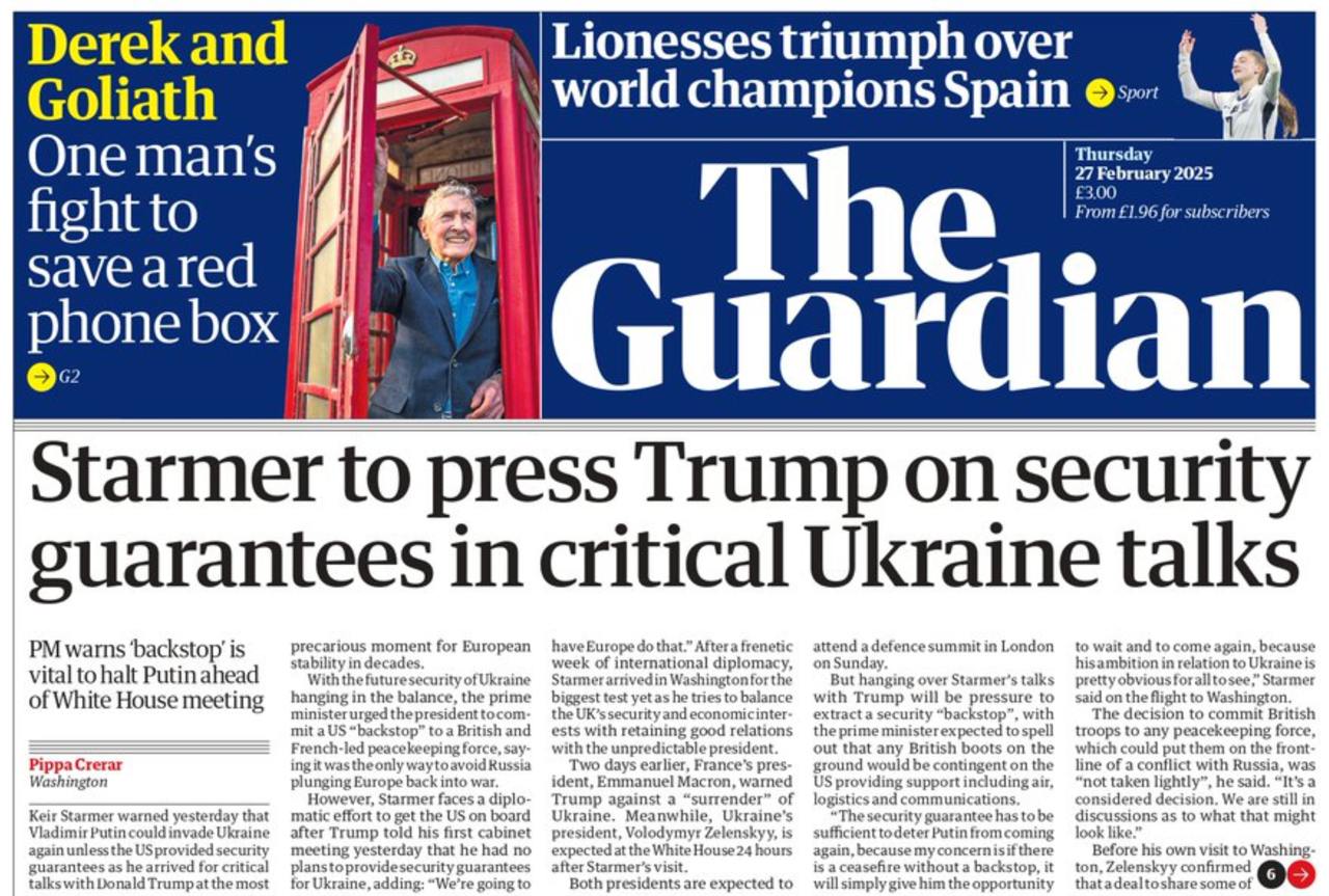 The Guardian: «Стармер надавит на Трампа по поводу гарантий безопасности в критических переговорах по Украине. Премьер предупреждает, что поддержка важна для того, чтобы остановить Путина».