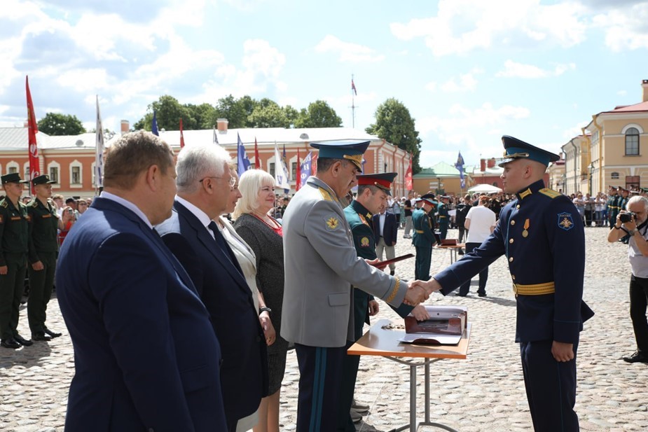 "От имени Министра обороны, коллегии Министерства обороны и себя лично сердечно поздравляю вас с успешным завершением учебы. Идея служения Родине, верности Отечеству — основа культуры Северной столицы, где вам выпала честь учиться. <...> Дорогие выпускники, перед вами стоят важные и интересные задачи, я уверен, что вы с честью выполните их", — подчеркнул замглавы Минобороны РФ.