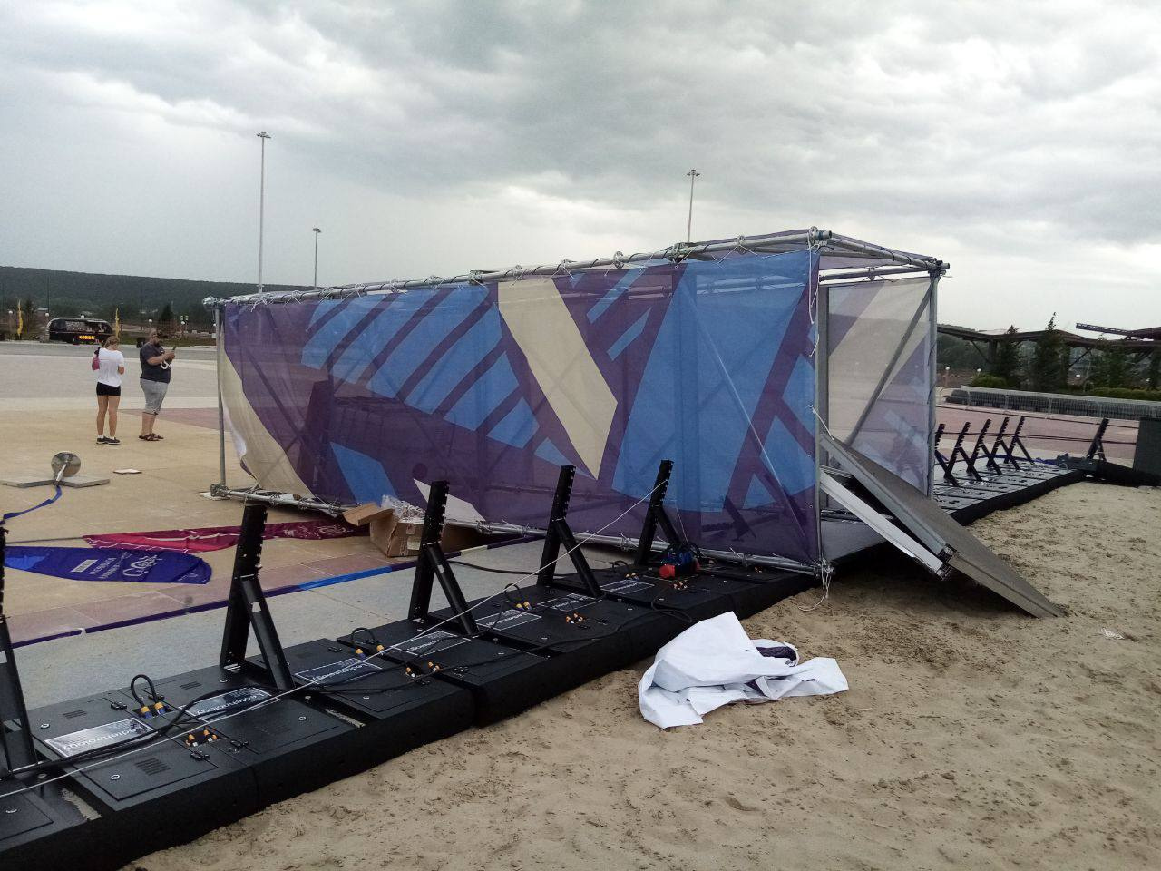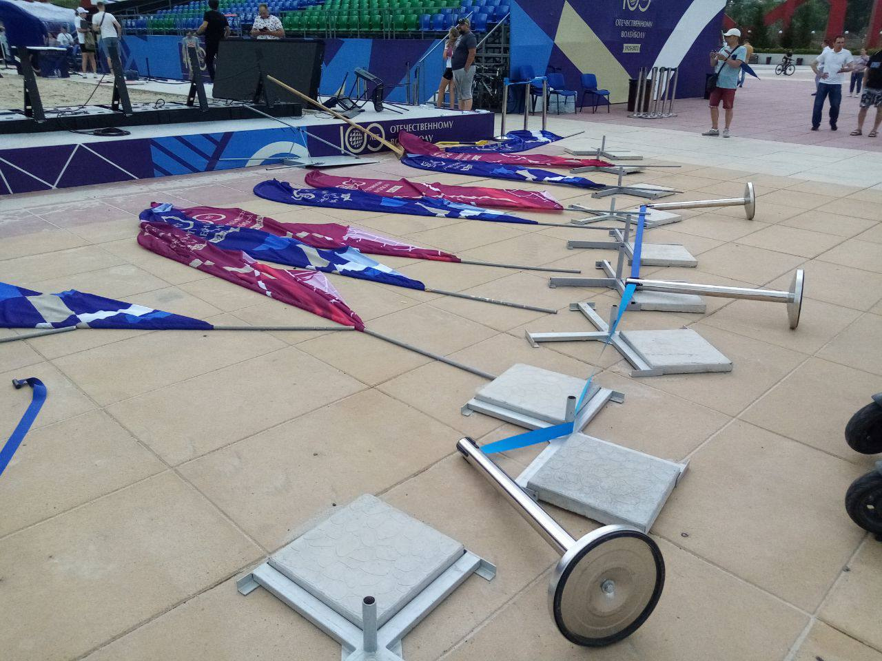 Также волейбольная федерация опубликовала несколько кадров оборудования, упавшего на площади из-за ветра.