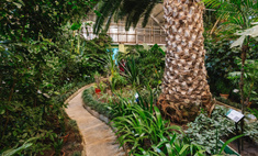 Первым делом взгляд упирается в огромную финиковую пальму. Это один из старожилов коллекции тропических и субтропических растений оранжереи, дереву около 70 лет. Раскидистая пальма выросла из косточки, которую посадил бывший директор ботанического сада Геннадий Андреев. Она регулярно цветет, но ни разу не плодоносила.