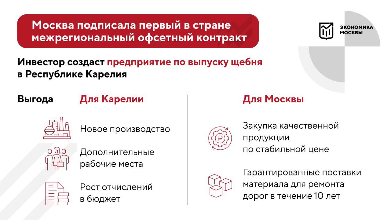 Москва получит материалы для строительства дорог по выгодной цене, Карелия — рабочие места и налоги, инвестор — стабильный доход.