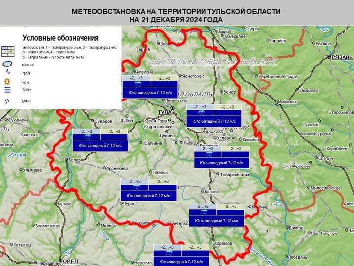 Об этом свидетельствует подготовленный тульскими спасателями ежедневный оперативный прогноз возникновения и развития чрезвычайных ситуаций на двадцать первое декабря.