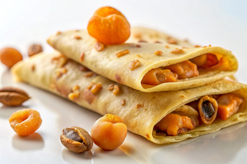 На 1 часть кураги берем 2 части фиников: промываем, вынимаем из них косточки. 100 г миндаля моем под проточной водой и обжариваем. После чего миндаль загружаем с сухофруктами в блендер и взбиваем до однородной массы, можно добавить по вкусу либо щепотку корицы, либо пару столовых ложек обжаренного кунжута. Пикантность вкусу добавят 1–2 столовых ложки коньяка. Начинку заворачиваем в пакет и даем настояться 30 мин., после чего пробуем массу и при необходимости подслащиваем — можно с помощью добавления меда.