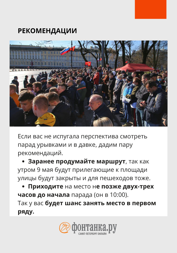 Вход по билетам, но не все потеряно. Как посмотреть парад Победы на Дворцовой