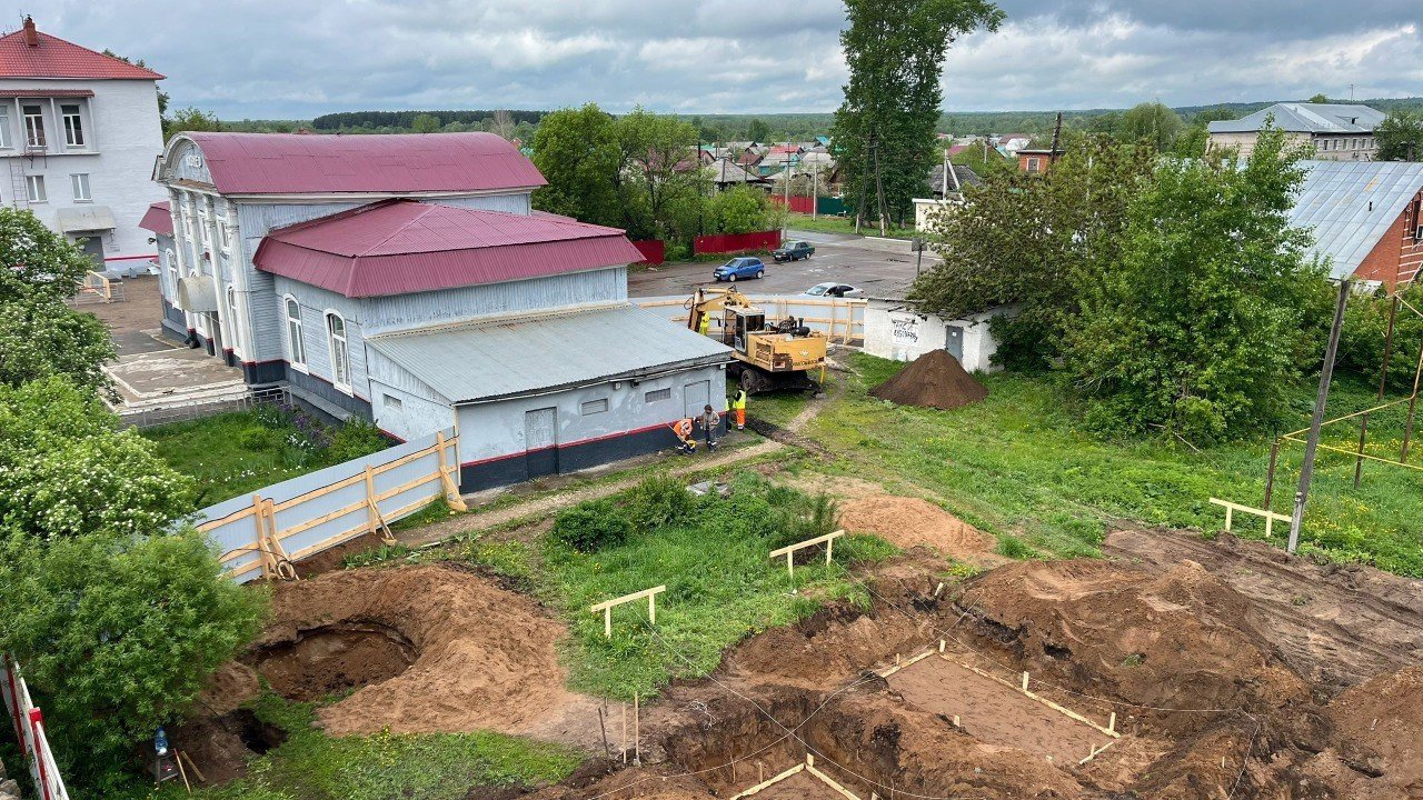 Новый вокзальный корпус строится рядом со старым, который возвели ещё в годы Первой мировой войны. Деревянный ЖД-вокзал пока остаётся действующим. Сейчас на стройплощадке рабочие устраивают фундамент и тянут инженерные коммуникации.