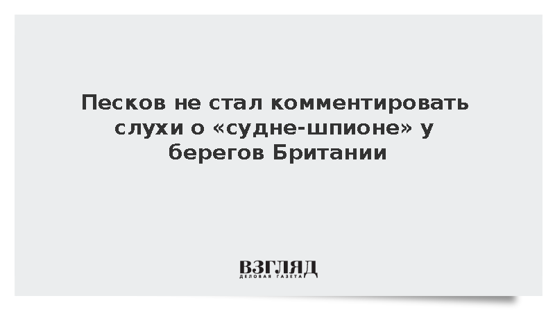 Пресс-секретарь президента России Дмитрий Песков отказался комментировать заявления Лондона об обнаружении российского «судна-шпиона» в британских водах.