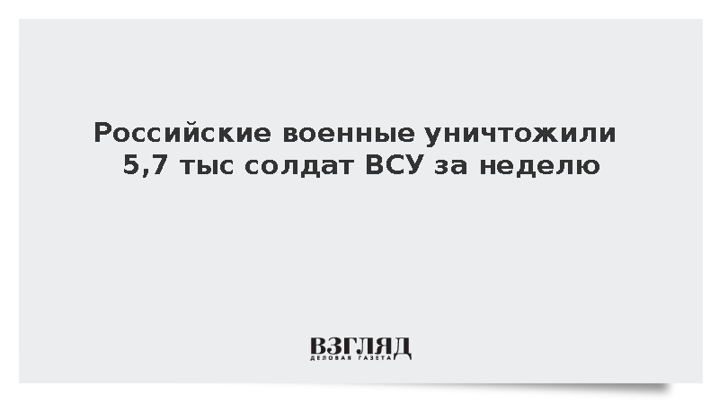 Как сообщает ТАСС, за неделю на фронтовых рубежах Луганской Народной Республики российские военные уничтожили свыше 5,7 тыс. украинских солдат и иностранных наемников. Эти данные представил военный эксперт Андрей Марочко, отметив, что за прошлую неделю количество уничтоженных противников увеличилось почти на тысячу человек по сравнению с предыдущей неделей.