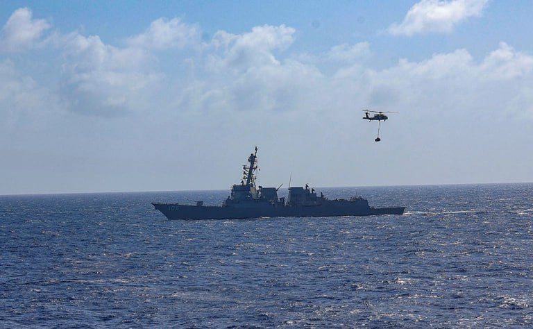 USSβ―Stockdale ΠΏΡΠΈΠ±ΡΠ» Π² ΠΠ°ΡΠΈΠ±ΡΠΊΠΎΠ΅ ΠΌΠΎΡΠ΅ Π² ΠΊΠΎΠ½ΡΠ΅ ΡΠ΅Π½ΡΡΠ±ΡΡ Π²ΠΌΠ΅ΡΡΠ΅ Ρ Π΄ΡΠΆΠΈΠ½ΠΎΠΉ Π΄ΡΡΠ³ΠΈΡ Π²ΠΎΠ΅Π½Π½ΡΡ ΠΊΠΎΡΠ°Π±Π»Π΅ΠΉ Π΄Π»Ρ ΠΏΠΎΠ΄Π΄Π΅ΡΠΆΠΊΠΈ ΠΎΠ±ΡΡΠ²Π»Π΅Π½Π½ΡΡ Π’ΡΠ°ΠΌΠΏΠΎΠΌ Π°Π½ΡΠΈΠ½Π°ΡΠΊΠΎΡΠΈΡΠ΅ΡΠΊΠΈΡ ΠΎΠΏΠ΅ΡΠ°ΡΠΈΠΉ Π² ΡΠ΅Π³ΠΈΠΎΠ½Π΅.