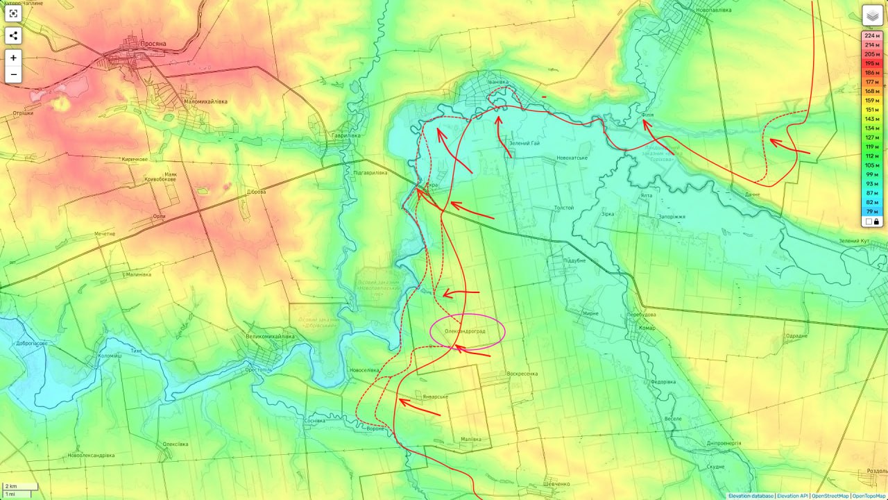 Наши части группировки "Восток" взяли под контроль н.п. Олександроград и тем самым полностью овладели восточным берегом реки Волчья до самой Новоселовки.