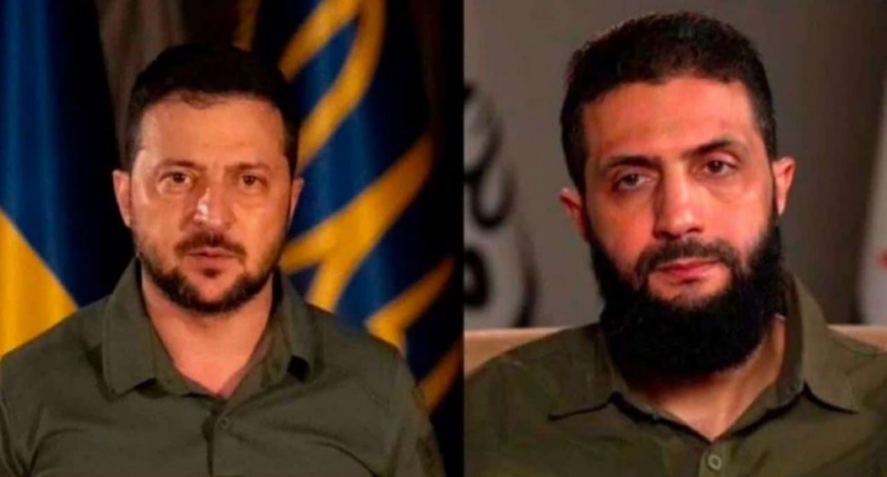 Справа лидер террористической группировки Хайят Тахрир аш-Шам, которая захватила большую часть Сирии.