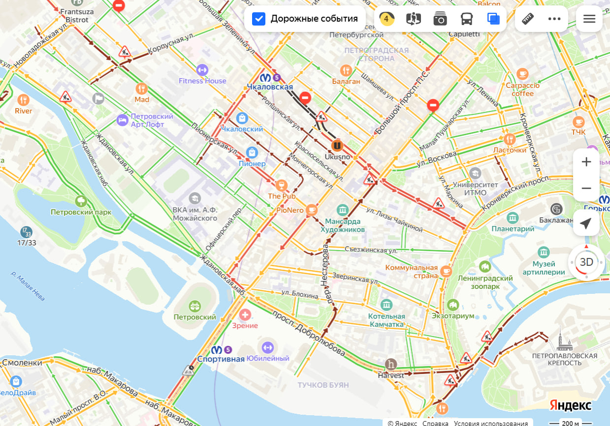 В целом загруженность дорог Петербурга в норме — 4 балла по шкале «Яндекса».