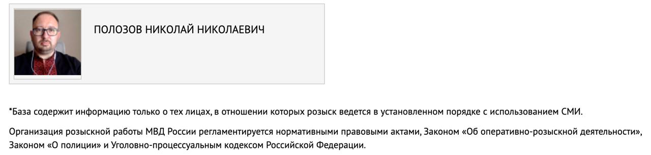 МВД объявило в розыск адвоката Николая Полозова (в реестре иноагентов РФ).