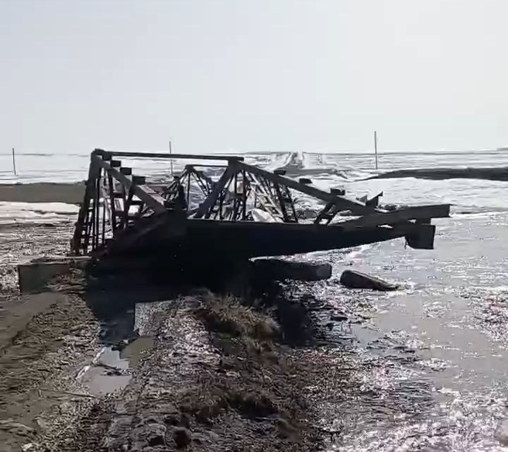 Всё случилось в среду, 3 апреля. На кадрах видно, как несущиеся по реке большие льдины врезаются в опоры и разрушают их. В итоге сооружение разламывается пополам и оказывается в воде.