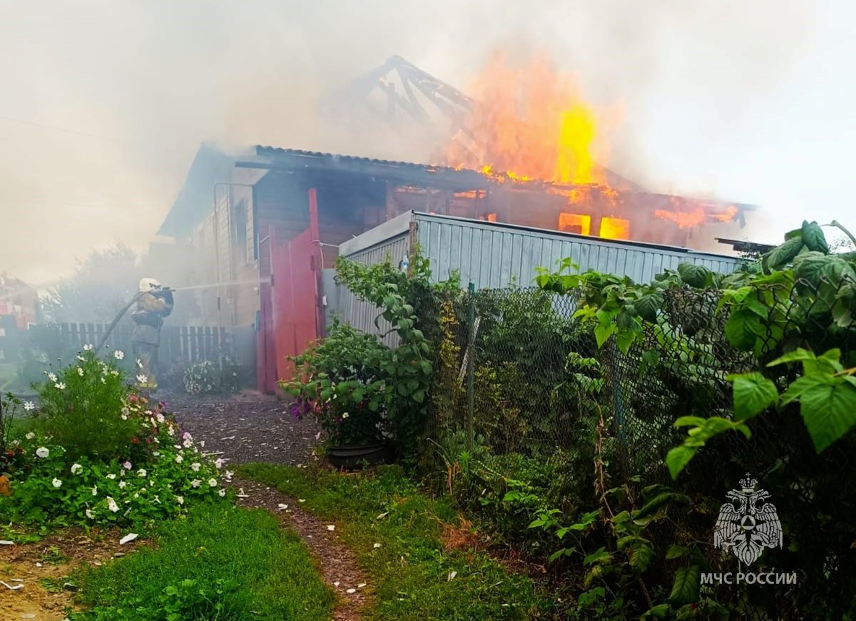 По предварительным оценкам, причиной ЧП могла стать неисправность электропроводки. Первой загорелась распределительная коробка в коридоре, а оттуда огонь быстро перекинулся на чердак. В результате крыша дома площадью 120 квадратных метров полностью сгорела и обрушилась. Во время пожара никто не пострадал.