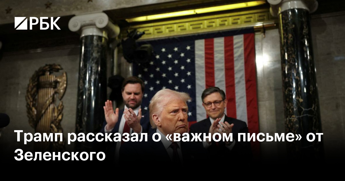 Президент США Дональд Трамп сообщил, что получит от украинского президента Владимира Зеленского «письмо», где тот выразил готовность начать мирный диалог. Об этом он заявил во время обращения к совместной сессии Конгресса США. Трансляцию ведет Белый дом.