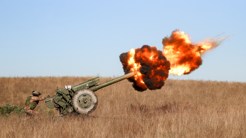 Первый снаряд ложиться точно в цель. Чтобы наверняка разрушить любые укрепления — артиллеристы делают еще несколько выстрелов.