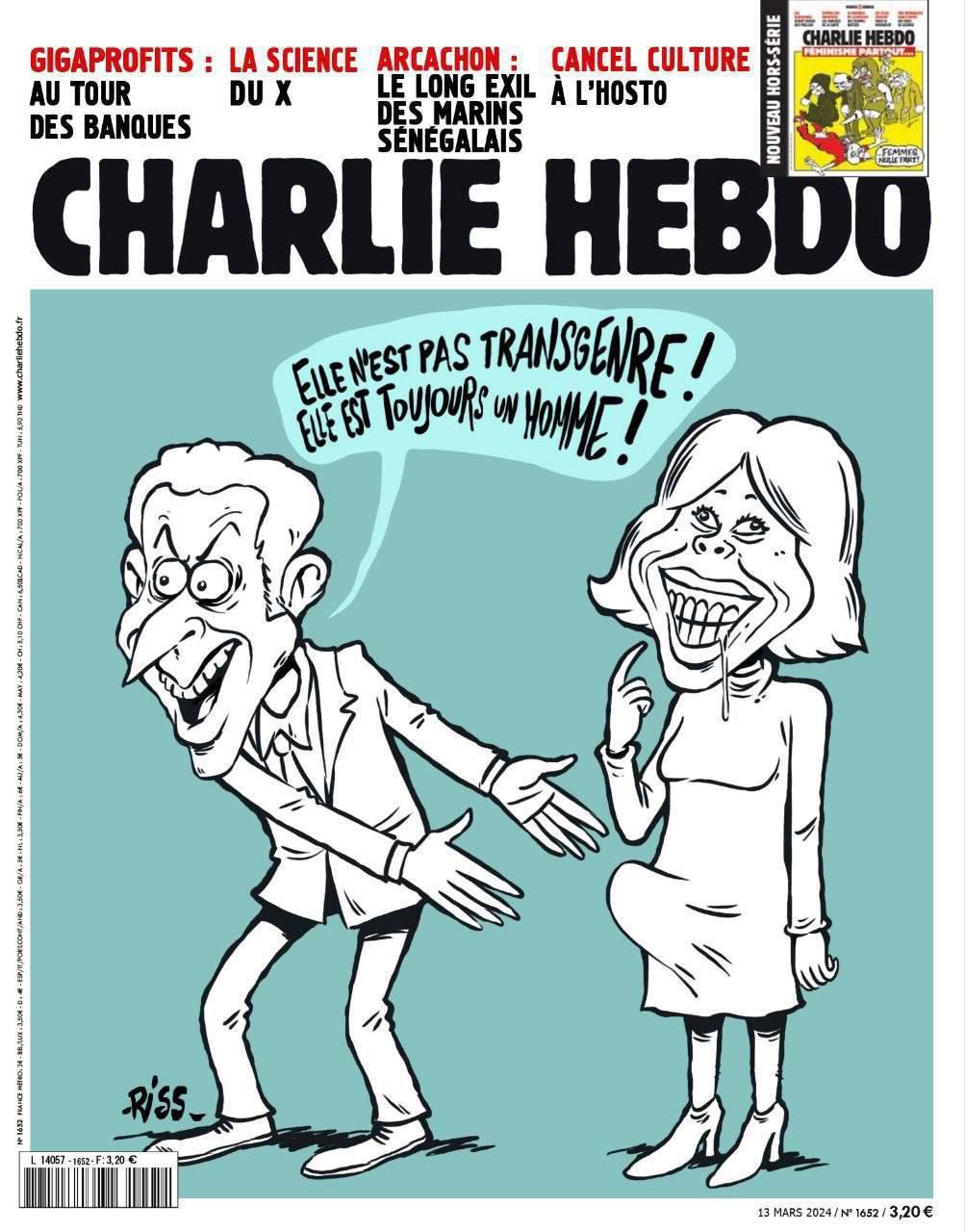 Π€ΡΠ°Π½ΡΡΠ·ΡΠΊΠΈΠΉ ΡΠ°ΡΠΈΡΠΈΡΠ΅ΡΠΊΠΈΠΉ ΠΆΡΡΠ½Π°Π» Charlie Hebdo ΠΏΠΎΠΌΠ΅ΡΡΠΈΠ» Π½Π° ΠΎΠ±Π»ΠΎΠΆΠΊΡ ΠΠΌΠΌΠ°Π½ΡΡΠ»Ρ ΠΠ°ΠΊΡΠΎΠ½Π° ΠΈ Π΅Π³ΠΎ ΠΆΠ΅Π½Ρ ΠΡΠΈΠΆΠΈΡ.