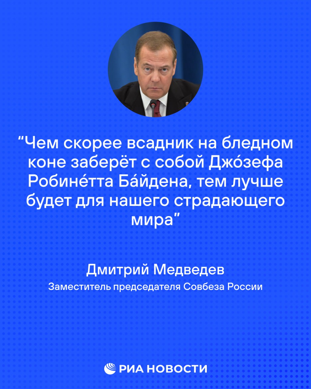 Медведев назвал абсолютным злом слова Байдена о том, что исход конфликта на Украине зависит от решений конгресса по финансовой помощи Киеву.