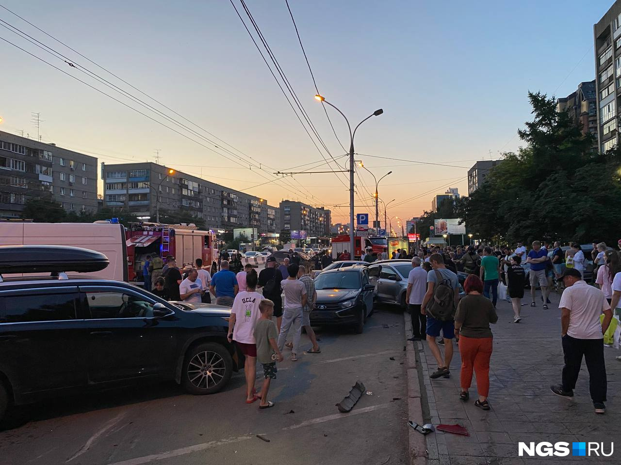 Момент столкновения также попал на видео, на кадрах заметно, что водитель гонит по Красному проспекту на высокой скорости, потерял управление и влетел в машины. Корреспондент НГС, который стал случайным очевидцем, отмечал, что на месте аварии были не только пожарные, сотрудники полиции и медики, но и вероятные друзья водителя BMW, их было человек 20. Автомобиль виновника аварии — без номеров.