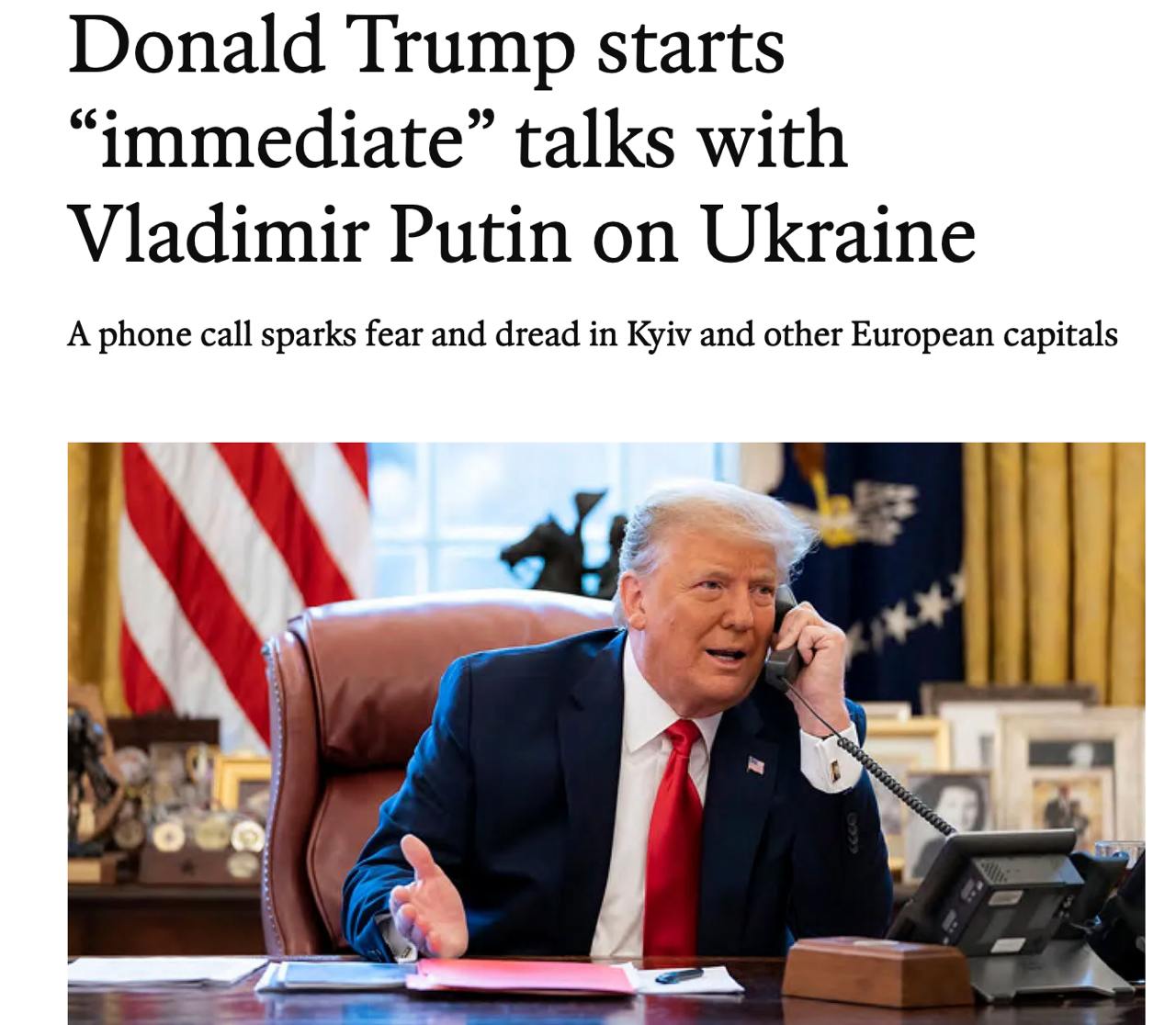 The Economist ΠΏΠΈΡΠ΅Ρ ΠΎ ΡΠ΅Π°ΠΊΡΠΈΠΈ ΠΠΈΠ΅Π²Π° Π½Π° ΡΠ°Π·Π³ΠΎΠ²ΠΎΡ Π’ΡΠ°ΠΌΠΏΠ° ΠΈ ΠΡΡΠΈΠ½Π°, ΡΡΡΠ»Π°ΡΡΡ Π½Π° ΡΠΊΡΠ°ΠΈΠ½ΡΠΊΠΎΠ³ΠΎ ΡΠΈΠ½ΠΎΠ²Π½ΠΈΠΊΠ°.