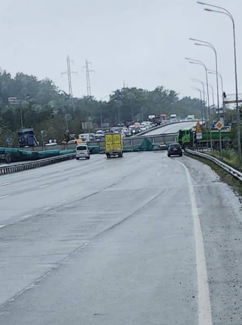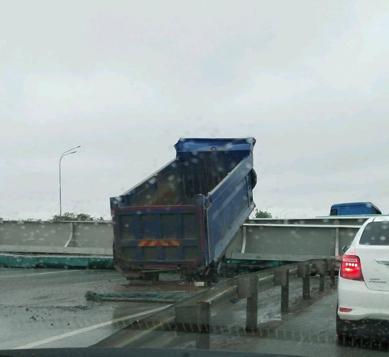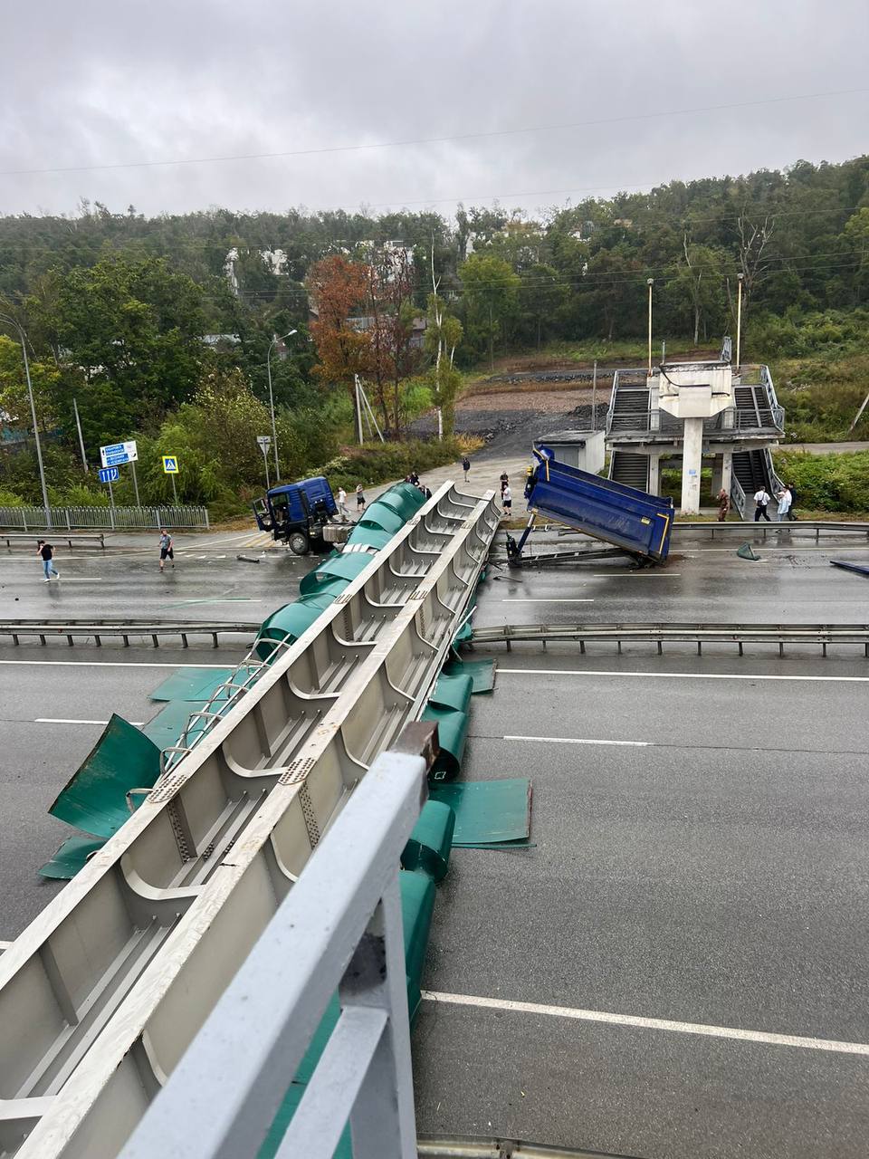 Самосвал влетел в виадук, который рухнул на федеральную трассу во Владивостоке. Водитель просто забыл опустить кузов.
