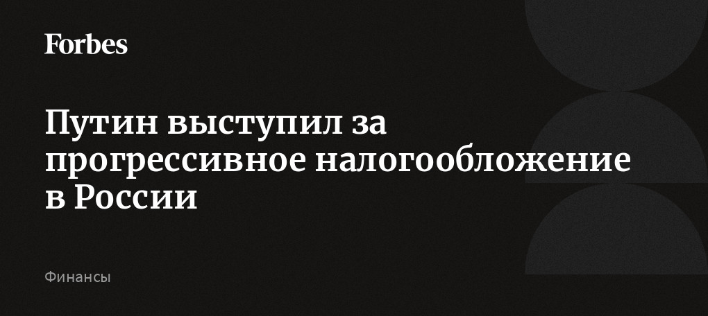 Путин выступил за прогрессивное налогообложение в России, отметив, что общество воспримет это нормально. В послании Федеральному собранию 29 февраля президент заявил о необходимости модернизации налоговой системы. По данным источников Bloomberg и Forbes, правительство обсуждает повышение НДФЛ с 13% до 15% для граждан с доходом от 1 млн рублей в год и с 15% до 20% — с доходом свыше 5 млн рублей в год