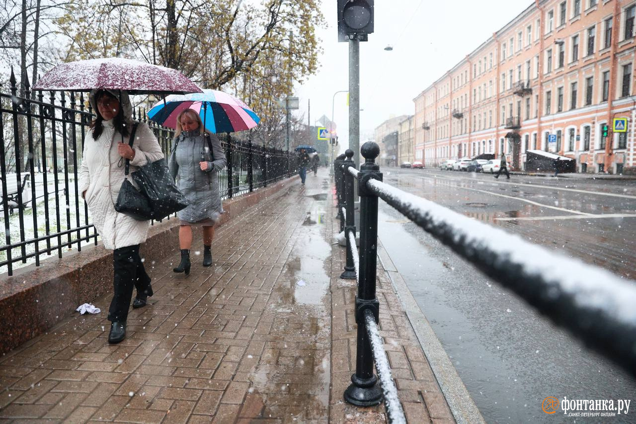 Для многих снег стал неожиданностью, но не для синоптиков. Сегодняшней погодой Петербург обязан циклоническим вихрям, поджимающим с юга и севера и создающим узкую полосу повышенного атмосферного давления. Главный синоптик города Александр Колесов дал прогноз на ближайшие дни.