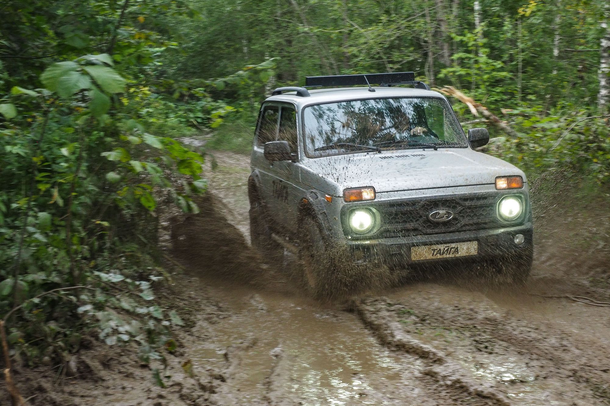 Как все это работает? А вполне ожидаемо. Как не умела классическая Нива ездить внатяг, так и не умеет. Неслучайно еще первые испытатели автомобиля говорили, что у всех внедорожников «проходимость», а у «Нивы» – «пролетаемость». Ну а что вы хотите? Для внедорожника 129 ньютон-метров крутящего момента, которые ко всему прочему достижимы лишь при 4000 об/мин – это слезы. Но вот стабильность поведения на грязной и скользкой лесной дороге достойна очень высокой оценки. Неплохо вел себя автомобиль и в песчаном карьерчике, и даже Тайге хватало дорожного просвета в весьма непростых ситуациях. Например, объезжая автомобиль коллег, я с легкостью проехал через брошенную на песок шину. Одним словом, Тайга должна вполне удовлетворить потребности тех, кто имеет обыкновение изредка выбираться на легкое бездорожье, например, на рыбалку или охоту, да и просто на дачу, если к ней ведет идущая через лес грунтовка. Ведь самое главное – автомобили полностью сертифицированы, и риск нарваться на неприятности с законом равен нулю.
