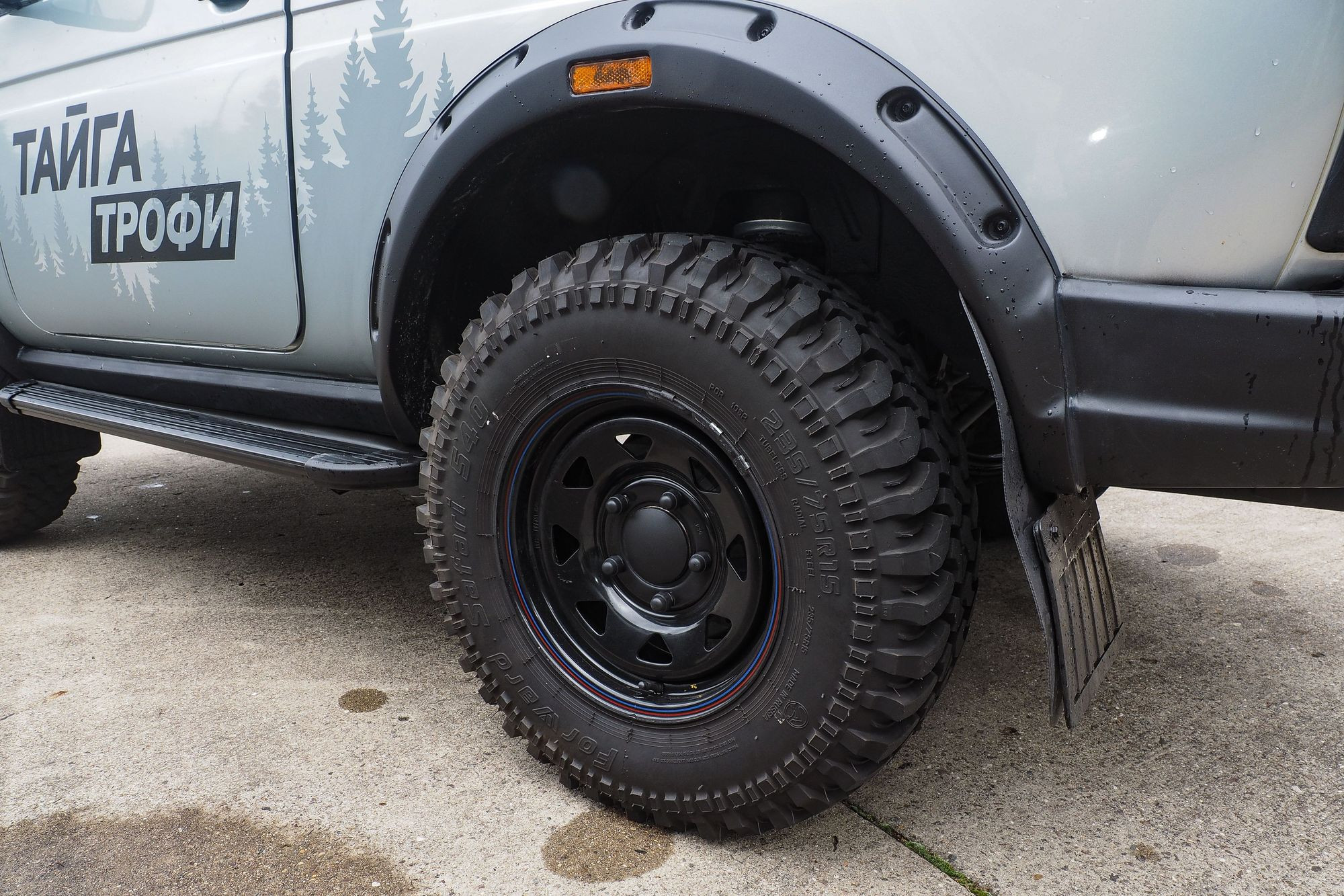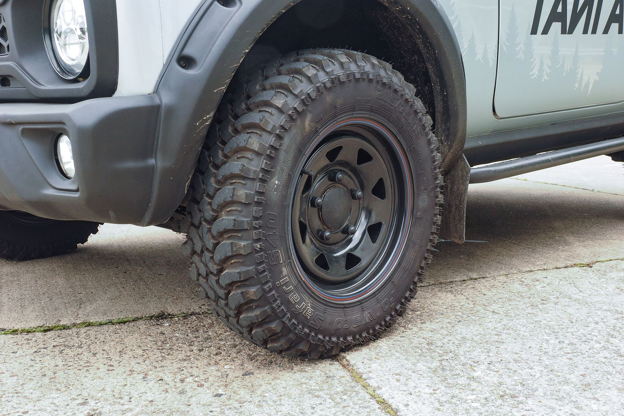 Для обеих машин в сертификат внесли новые допустимые размерности шин: 205/75 R15 – для Тайги и 235/75 R15 – для Тайги Трофи. Эти шины существенно шире штатных грязевых ВЛИ-5 размерностью 175/80 R16, а значит, обеспечат гораздо большую эффективность на слабых грунтах, поскольку не будут вгрызаться в грунт с настойчивостью бензопилы. Но именно эти шины потребовали модификации подвески: пружины обычной Тайги установлены через проставки толщиной 30 мм, а Тайги Трофи – 50 мм. Не случайно дорожный просвет второй Нивы выглядит существенно более высоким, чем у простой Тайги.