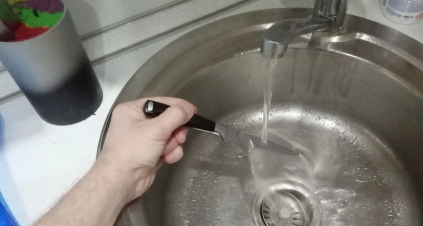 4. Завершающий этап: чистота – залог успеха: После заточки тщательно промойте нож под струёй воды, чтобы полностью удалить остатки зубной пасты, соли и уксуса.